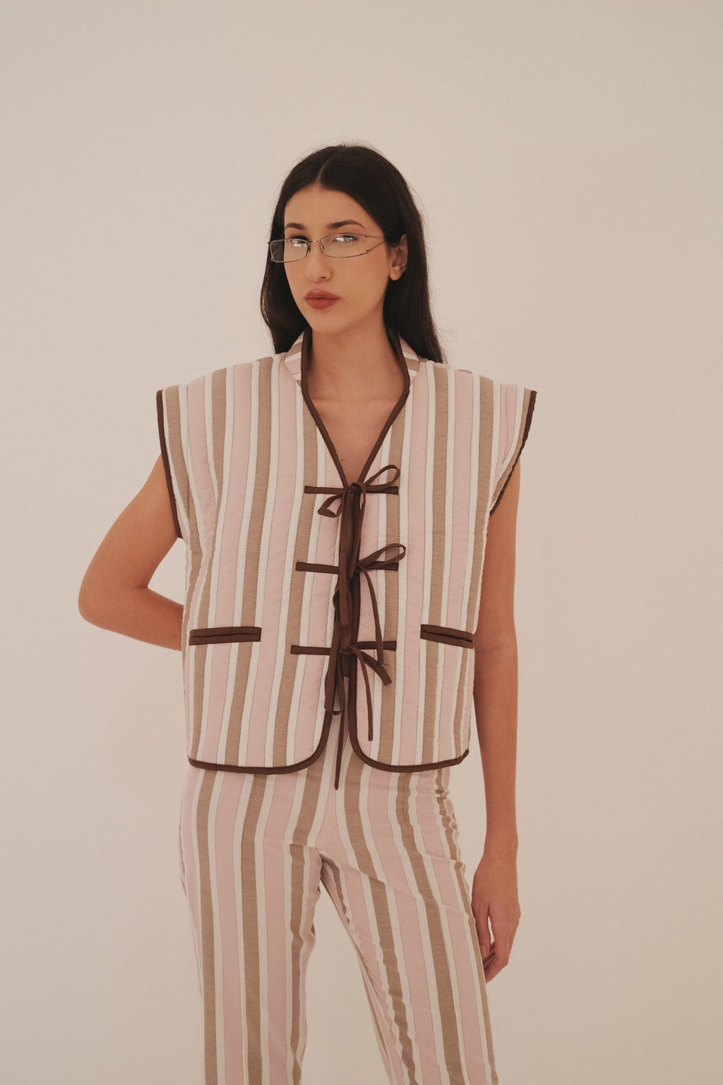 O Casaco/Colete Madeleine é uma peça-ícone da Ana Fonsaca. Um design autoral que une funcionalidade, sofisticação e artesania — traduzindo perfeitamente o estilo simple chic, dressed down.