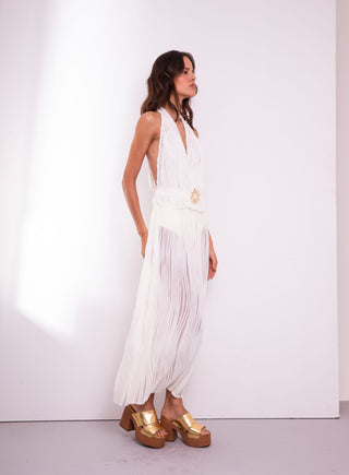 Macacão Preto Cetim Bordado c/ Ombeiras